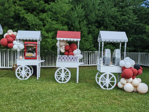 This package includes a Full set up of two stations, two machines for each station, choice of vanilla, chocolate, or both (Approximately 100 4oz cones each station), cones or cups, Two cone holder, rainbow and chocolate sprinkles at each station, and one attendant.